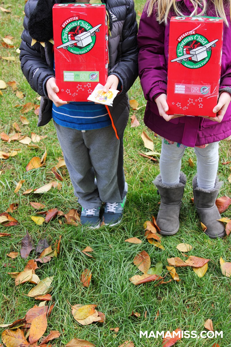 These boxes have become our tradition every year. Check them out here for more info. We head to the dollar store, the kids grab a basket and work really hard, and with a lot of thought, on filling their boxes. We then drop them off at a designated donation spot and send them on their way to a deserving child.